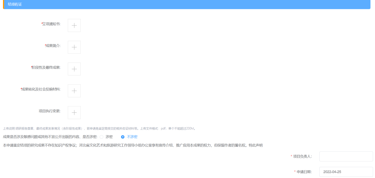 3)按照结项申请要求,将申请的项目信息资料,填入相应的输入框中。 信息输入过程中,系统将随输入及时验证输入内容的合法性,并以红色提示文字提示录入问题。