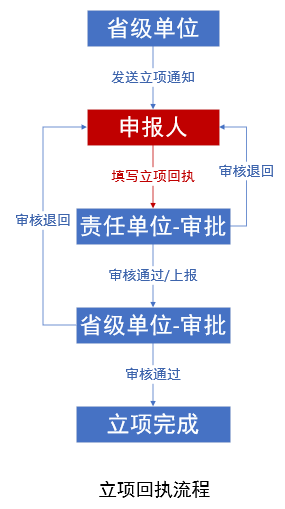 立项回执功能,用于提交已申报且省级单位通过的项目回执单,流程如下图4-1所示。