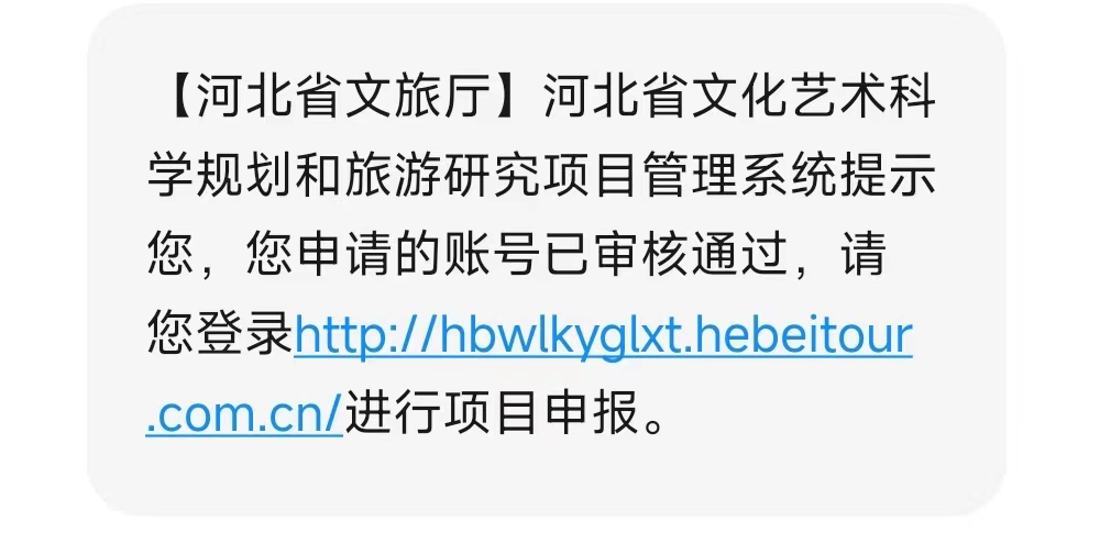 注:申报人提交注册成功后,需等待责任单位审核后,才能登录;责任单位审核通过后,会发送短信通知申报人,如下图1-7所示: