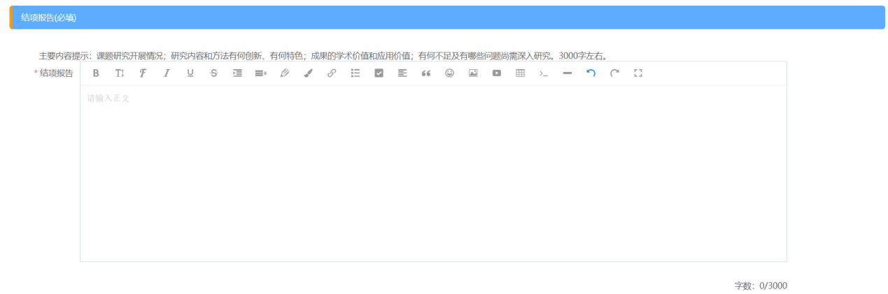 3) 点击“填写结项申请”按钮,可以填写和编辑申请信息。