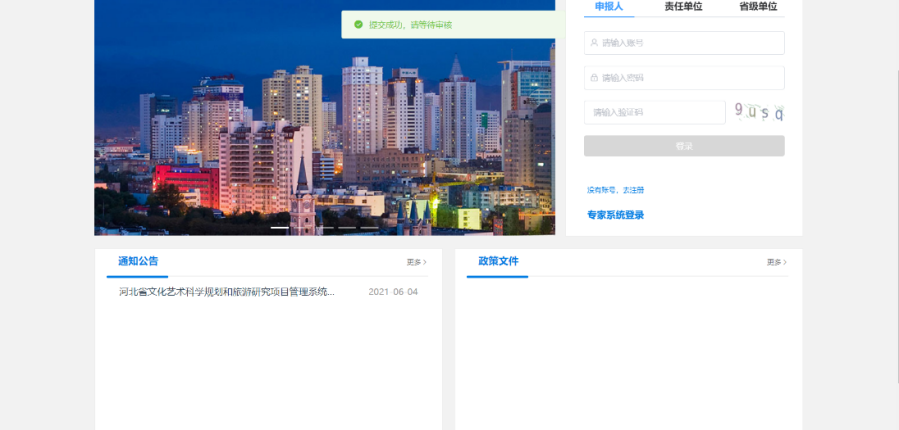 获取登录账户在项目管理系统首页通过注册提交信息、责任单位审核通过后获取登录权限。